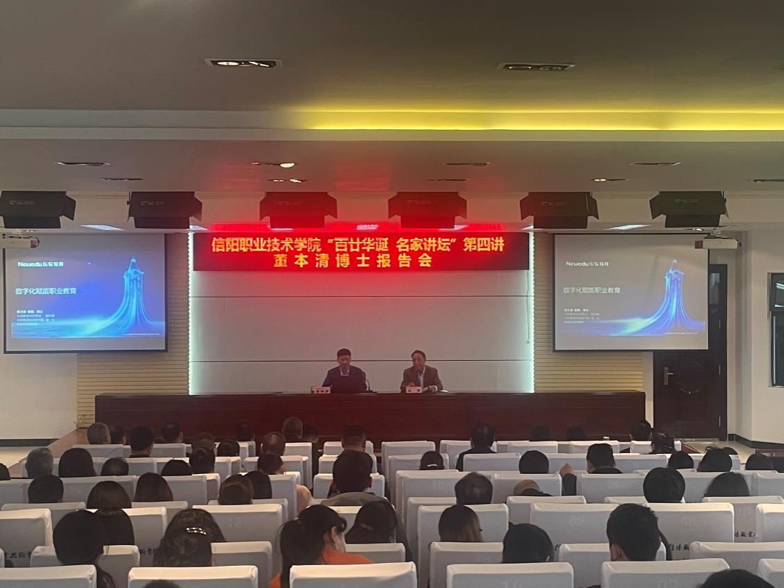 3月28日下午,东软教育科技集团副总裁、东软教育科技研究院院长董本清博士应邀到开云作了题为《数字化赋能职业教育》的报告会。学校党委书记郑洪涛,副校长王豪、郑延芳、李新毓、教务处处长余磊、党办主任张国锋、开云官网院长黄德成、党总支书记严正香等全校副科级以上干部及各教学院部基层教学组织负责人参加了报告会,会议由王豪副校长主持。